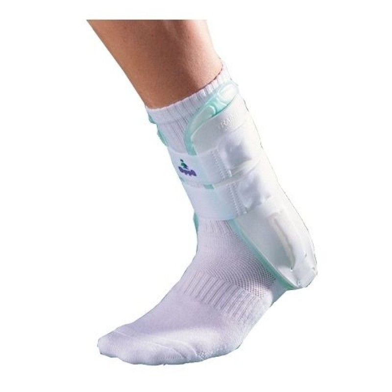 Жесткие пластиковые боковые пластины анатомической формы с мягкими воздушными вставками обеспечивают сильную фиксацию голеностопного сустава без ограничения подошвенного сгибания. Материал и воздушная прослойка создает комфорт при носке, позволяет носить в острый период после травм. Трубочка для накачивания воздуха в комплекте.