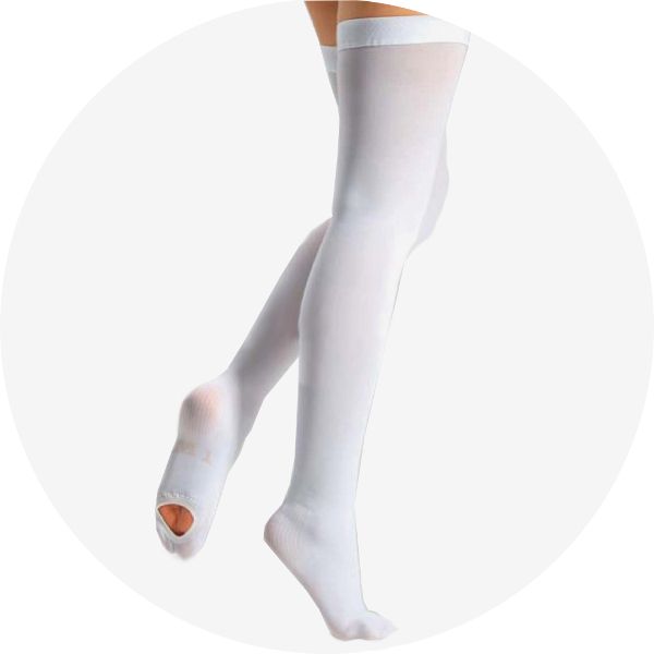 Антиэмболические чулки обеспечивают поддержку венозных стен, препятствуя возникновению или развитию варикозной и других болезней ног.