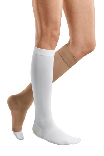 Одна пара гольфов mediven ulcer с давлением на уровне лодыжек 20 мм рт. ст. служит для обеспечения круглосуточной компрессии. Такое умеренное давление покоя хорошо переносится пациентами в течение 24 часов. Обновленный мягкий и приятный для кожи материал белого цвета с антимикробным эффектом препятствует размножению микроорганизмов и образованию характерного запаха, обеспечивая высокий уровень комфорта при круглосуточном использовании.