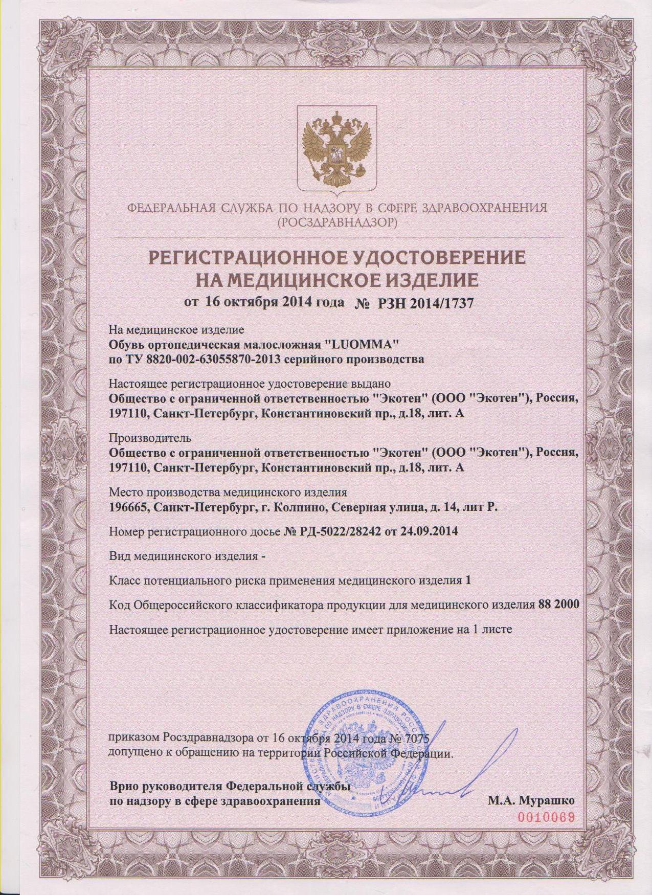 | Назначение обуви | Терапевтическая |