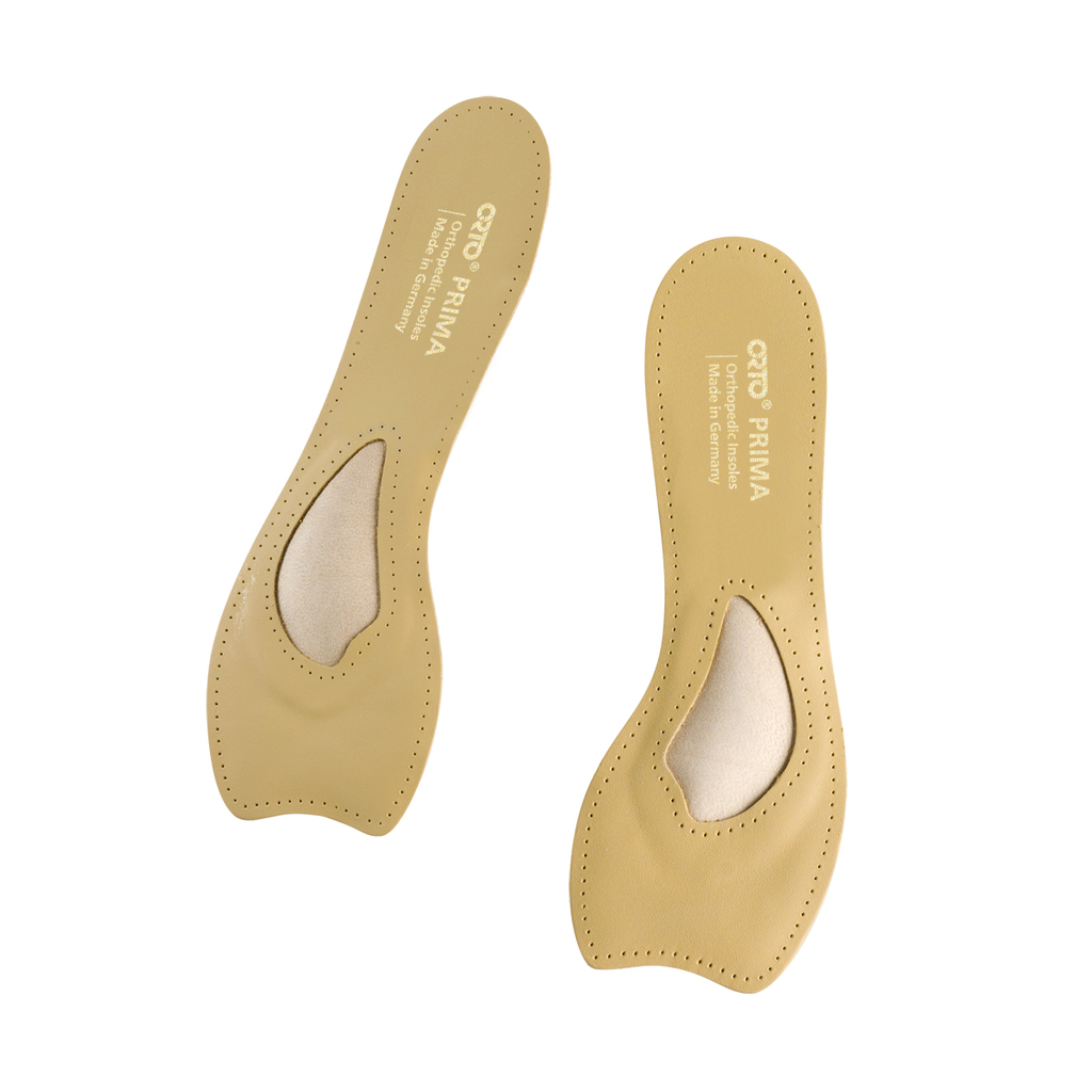 Ортопедические стельки ORTO Prima с зауженной укороченной формой специально созданы для открытой летней обуви. Могут использоваться в обуви с каблуком более 5 см. Имеют укороченную носочную часть, мягкий пелот в области поперечного свода и тонкий смягчающий слой в передней и центральной части стельки. Покрытие изготовлено из натуральной кожи.